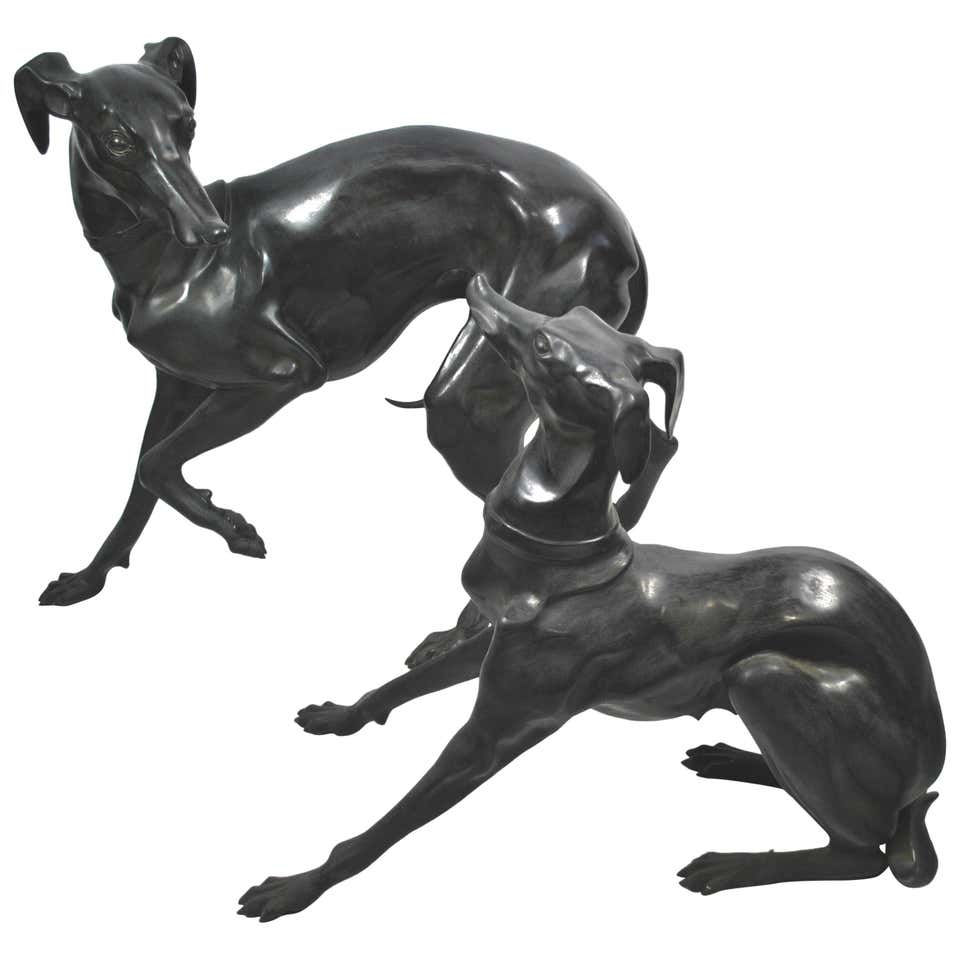 Large Pair of 1960s Bronze Greyhounds in Dominance Stance